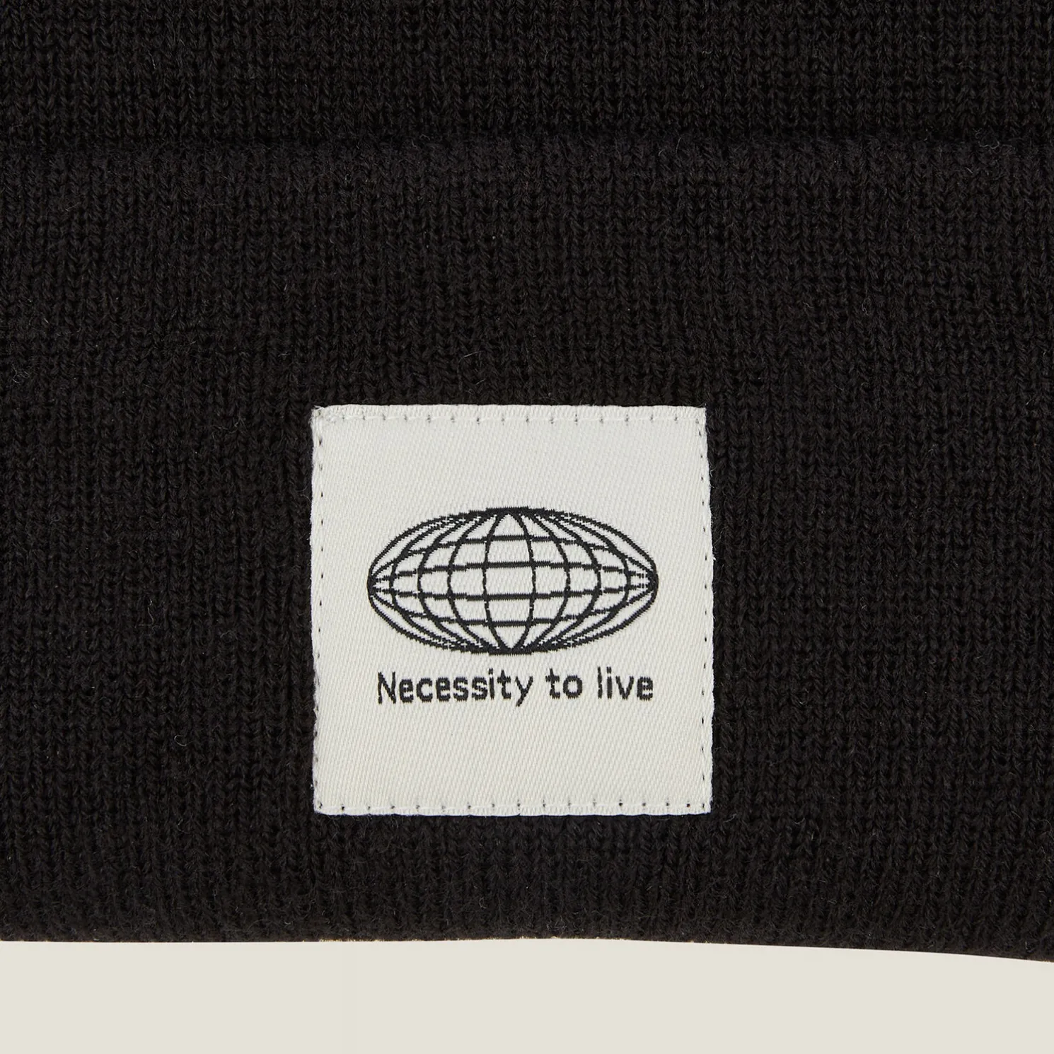 - Etiket “Necessity to live” vooraan opgenaaid
