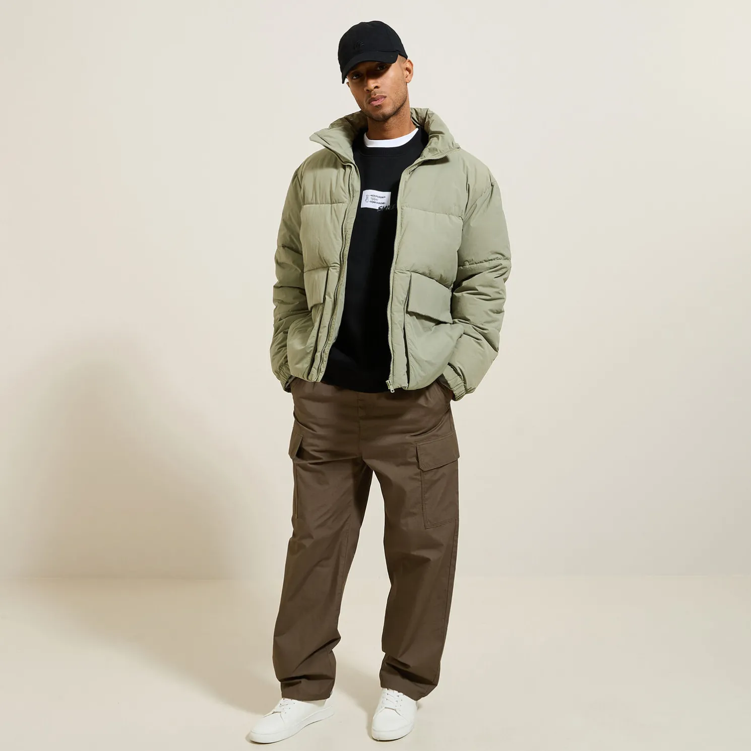 Het model meet 1m86 en draagt maat L.