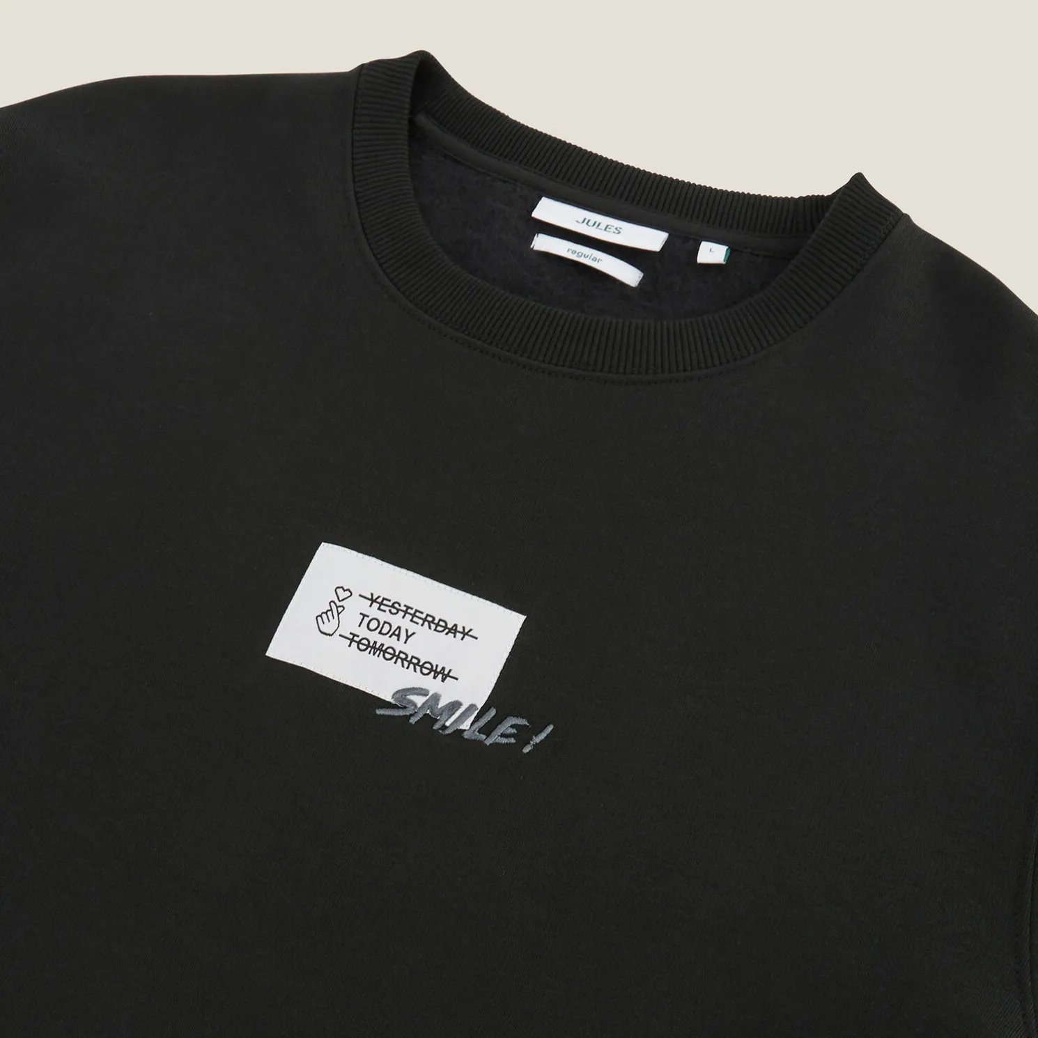 - De patch met borduursel op de voorkant biedt een originele touch