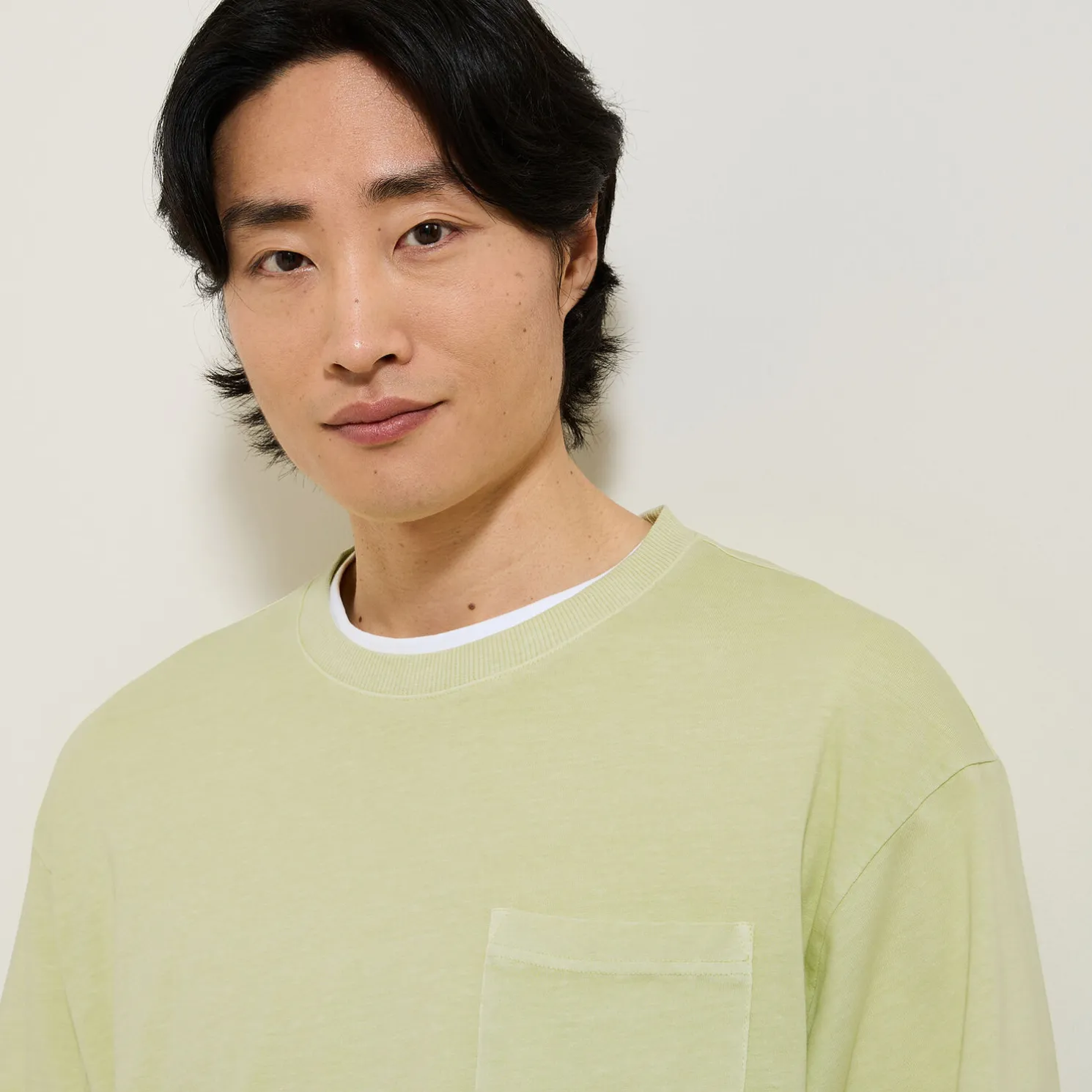Het t-shirt in garment dye, voor een verouderd en uniek aspect; wanneer je hem hebt past, kan je niet meer zonder! Combineer hem met een jeans of chino voor een casual uitstraling.