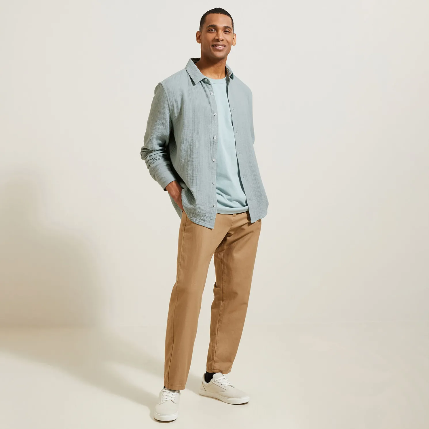 Hemd in katoengaas met klassieke kraag