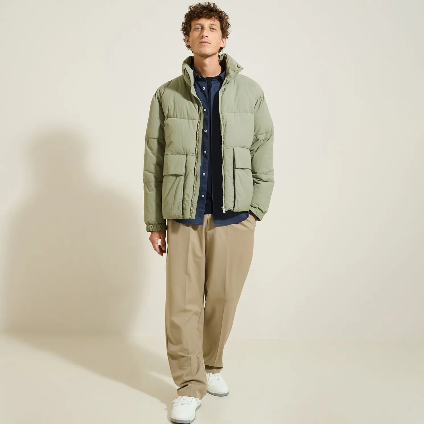 Het model meet 1m86 en draagt maat L.