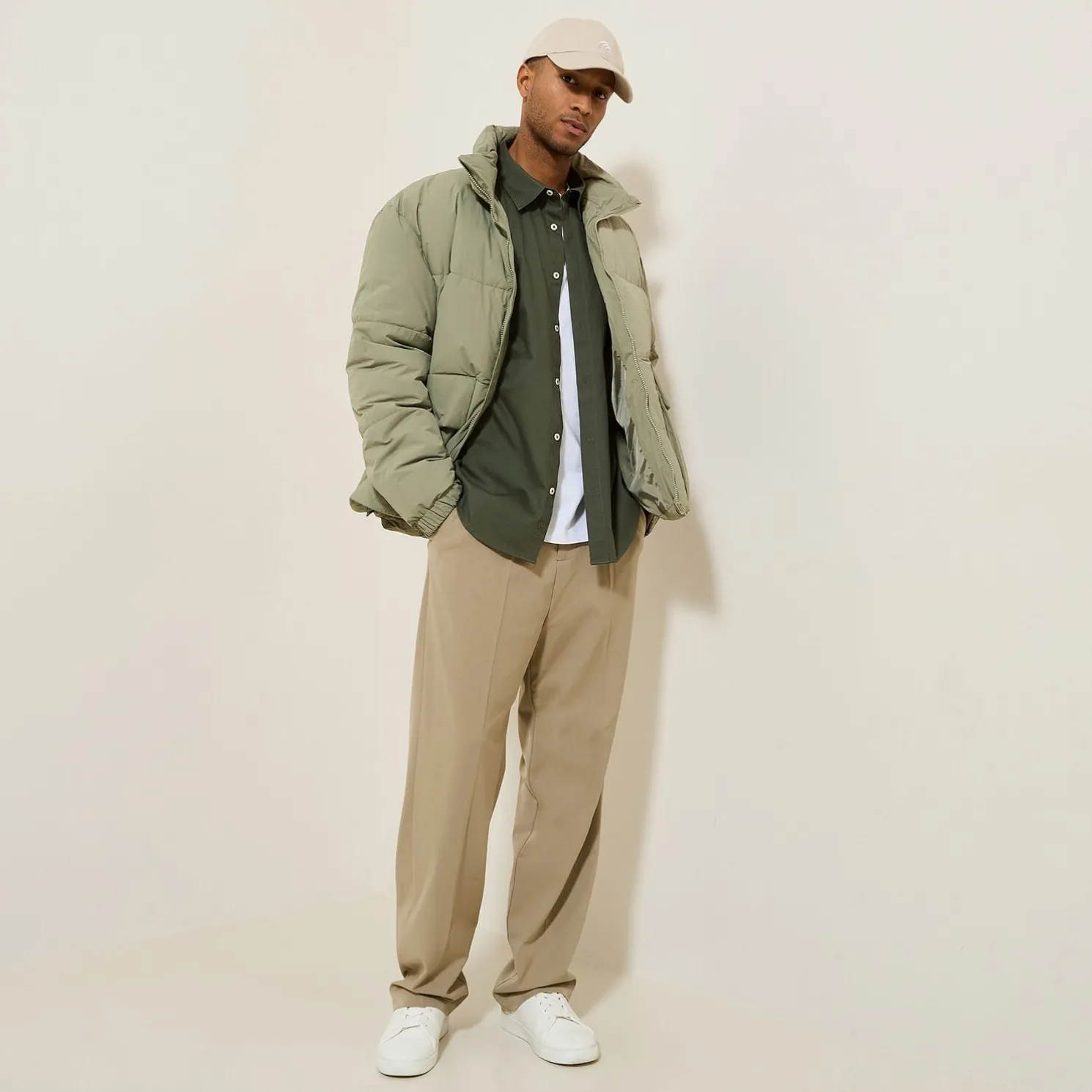 Het model meet 1m86 en draagt maat L.