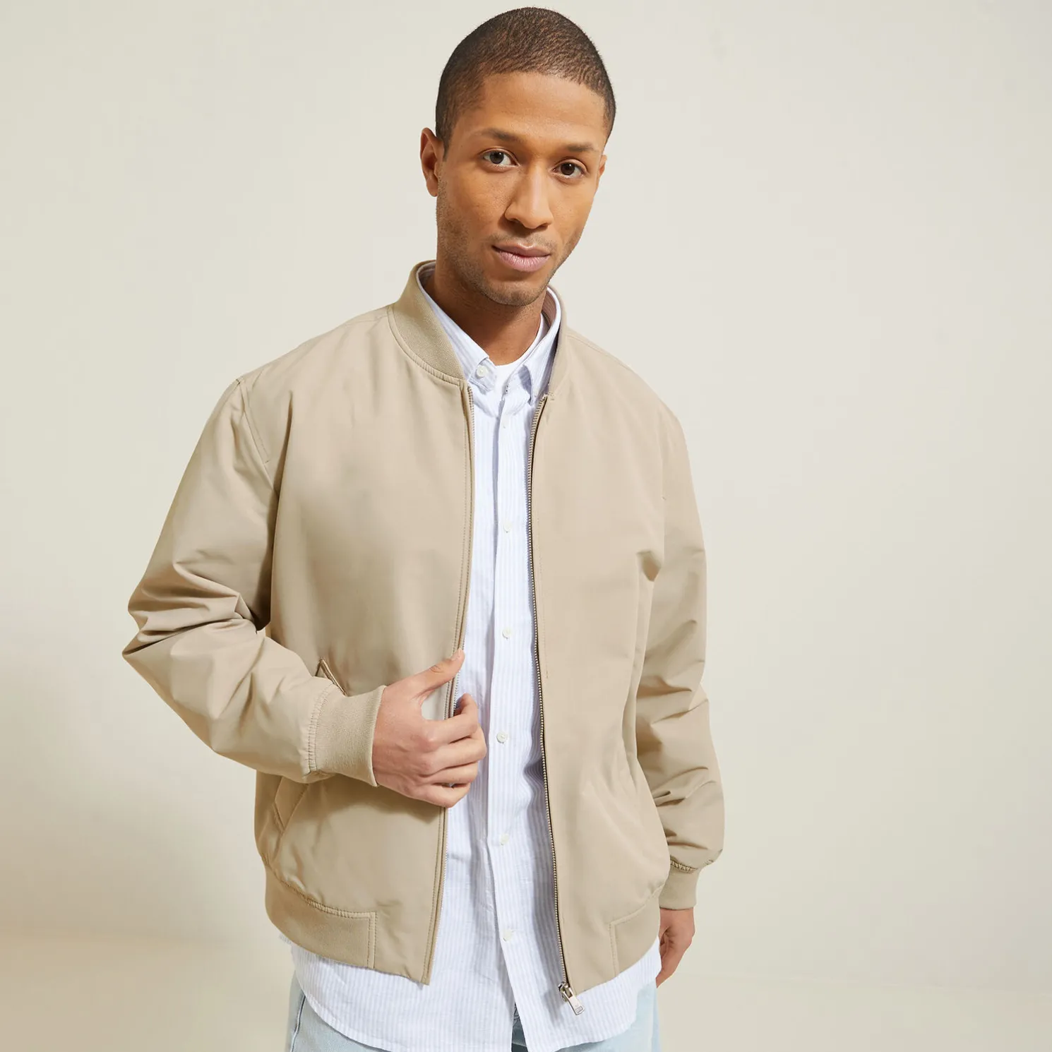 Dit lichte, casual jack met rits past prima op een chinobroek of een jeans, over een T-shirt.