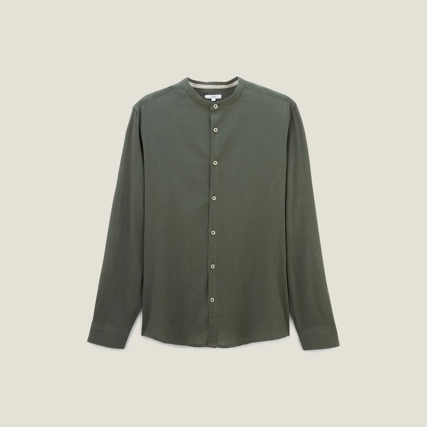 - Mao-kraag, ronde vorm met knoop, zonder klep